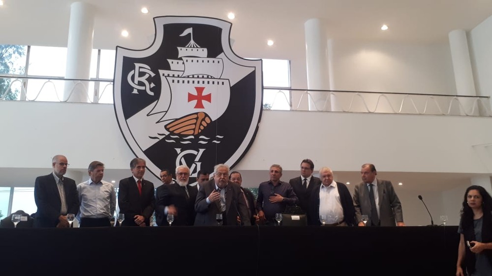 – Meus amigos, eu acho que hoje é um dia histórico para o Vasco. Principalmente ao pessoal da imprensa, o que eu quero dizer é que hoje é um dia histórico no Vasco. Nós temos aqui reunidos com o Vasco absolutamente pacificado. Estou aqui com as grandes lideranças do Vasco demonstrando que o clube está pacificado. Estou aqui como presidente do Conselho de Beneméritos participando dessa pacificação. O objetivo hoje, claro, é dar uma demonstração de que o Vasco está pacificado internamente. E agora vamos tentar pacificar na Justiça.